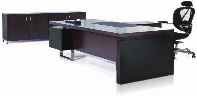 ※面貼鐵刀木皮+黑色纖紋塗裝,主桌面崁PVC皮墊,方型不鏽鋼鋼管腳架,全展式鋼珠滑軌。